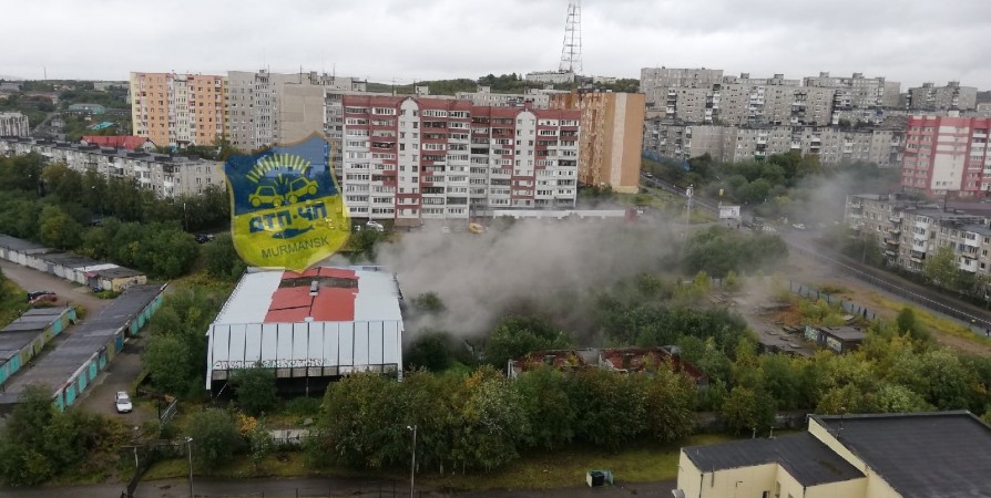 На Кольском в Мурманске горел недостроенный ангар [видео]