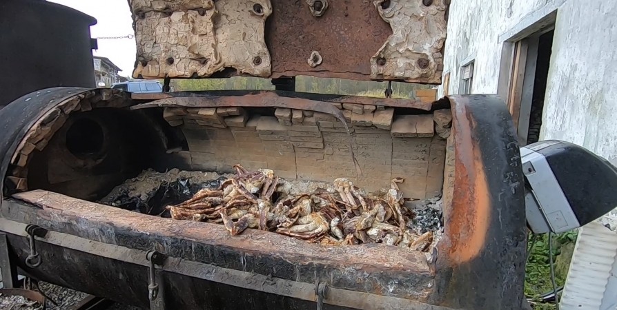 В Заполярье в присутствии Пограничного управления ФСБ России по западному арктическому району, специалистов ГОБВУ «Мурманской областной станции по борьбе с болезнями животных», а одного из участников противоправной деятельности сожгли изъятого у браконьеров краба.