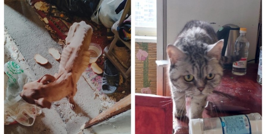 В Мурманске собака Бэлла и серая кошка Морошка долгое время голодали в съемной квартире, где их бросил нерадивый хозяин. Истощенных животных, от которых, кажется, остались только кости, сейчас выхаживают зооволонтеры.