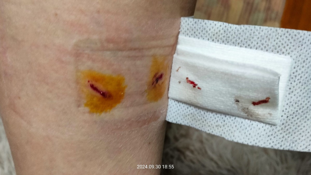 — Случилась вот такая неприятность. Вечером в районе 17 часов шла встречать супруга, в сторону «Горячих ручьёв». С территории воинской части (…) выскочила свора собак (молодые собаки), кидались, одна из них прокусила ногу через плотные кожаные штаны, — рассказала подписчица группы Юлия Потапкина.