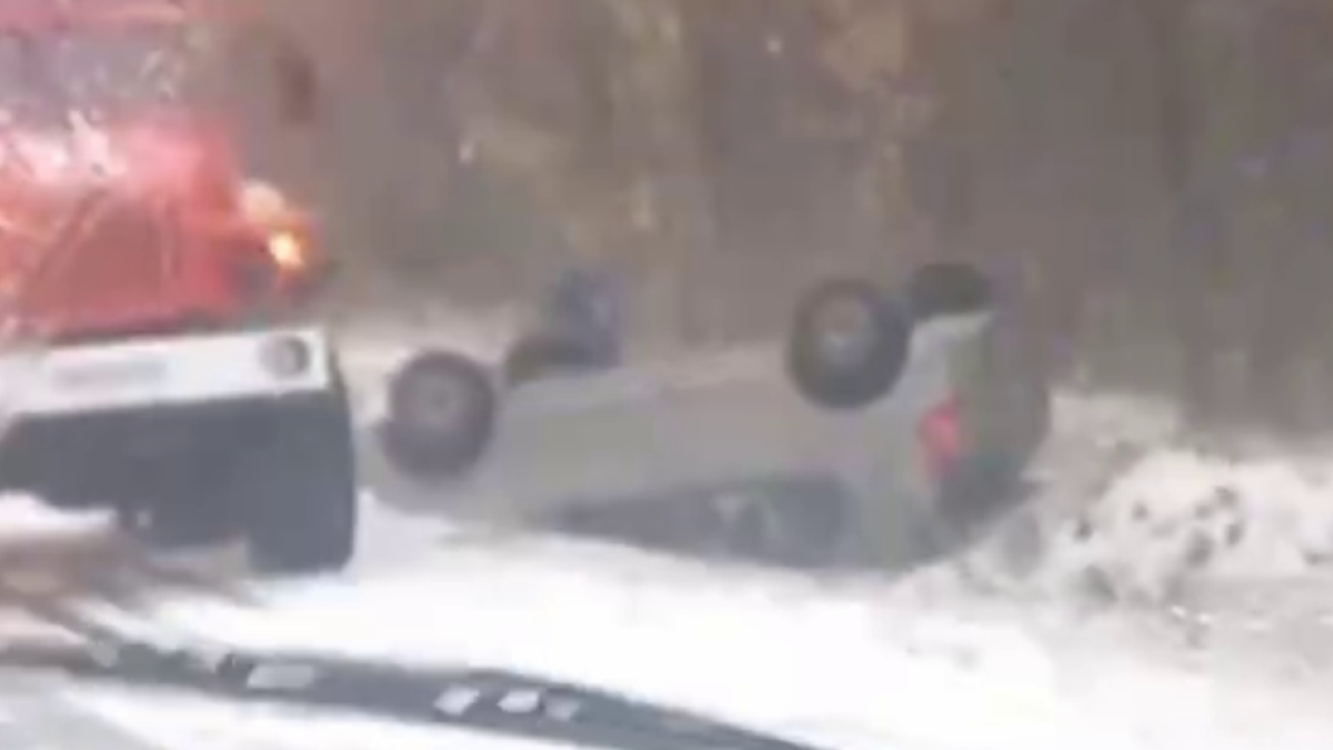 На трассе под Апатитами легковой автомобиль вылетел в кювет и перевернулся. Видео опубликовано в телеграм-канале «Народное телевидение Хибины». На месте ДТП работают спасатели.