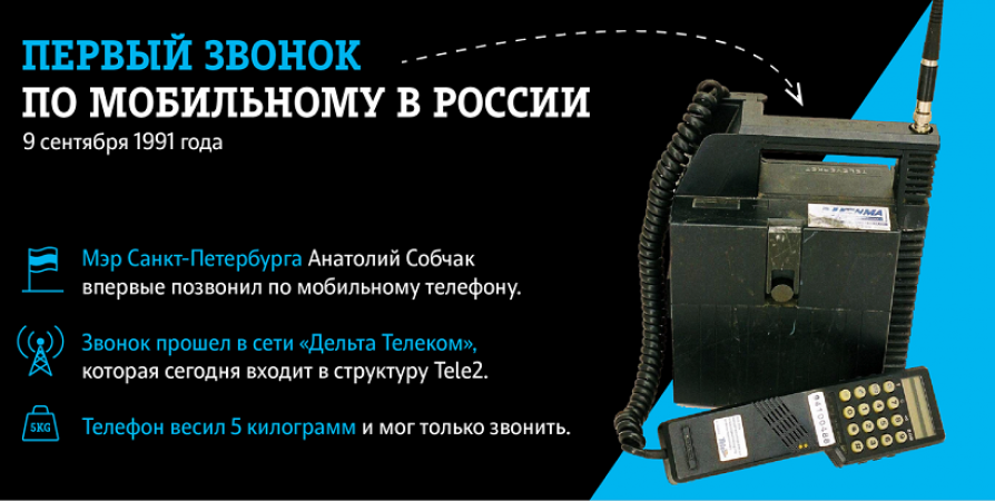 Эра российской сотовой связи началась 9 сентября 1991 года: мэр Санкт-Петербурга Анатолий Собчак совершил первый звонок по мобильному телефону в сети компании «Дельта Телеком», которая сегодня входит в структуру Tele2 и работает под брендом Skylink по технологии LTE-450. За 30 лет телекоммуникационная отрасль в Росси проделала огромный путь. Телефон, по которому звонил Собчак мэру американского города Сиэтл, весил около 5 килограмм и умел только совершать и принимать звонки. Современный смартфон весит меньше 200 грамм и заменяет людям ноутбук, фотоаппарат, видеокамеру, музыкальный плеер, навигатор и кошелек.