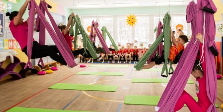 Занятие по аэройоге прошло в рамках фестиваля физкультуры и спорта в дошкольных учреждениях Мурманска «Белый медвежонок».