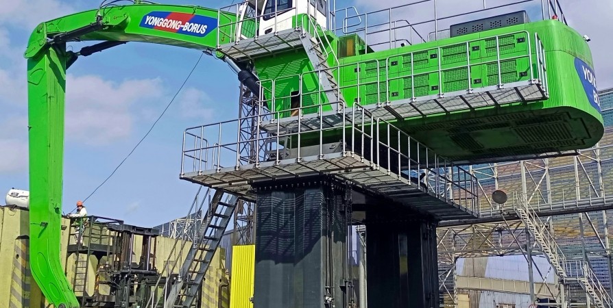 Новый портальный гидравлический грейферный погрузчик YGZ2000 поступил в Мурманский морской торговый порт НТК. Сейчас техника проходит процесс обкатки.