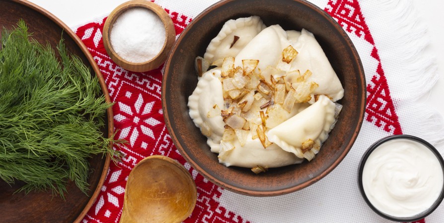 Такие вареники можно подавать со сливочным маслом и поджаренным луком