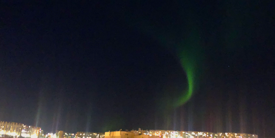 Яркие всполохи были видны мурманчанам в большей степени в центре столицы Заполярья, а также за городом.