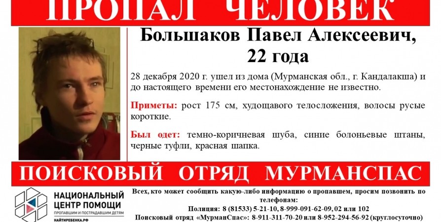 Пропавшего в декабре прошлого года 22-летнего жителя Кандалакши Павла Большакова нашли живым, сообщили волонтеры поискового отряда «МурманСпас».