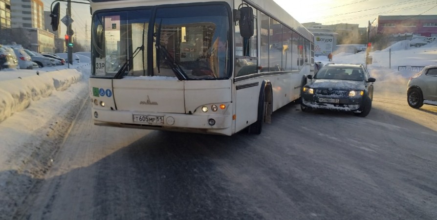 Сегодня на одном из оживленных мурманских перекрестков на Кольском проспекте произошло ДТП с участием общественного транспорта. Столкнулись автобус, следующий по маршруту №33Р, и легковой автомобиль Skoda.