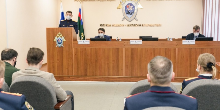 В работе коллегии приняли участие руководитель Следственного управления Андрей Ефремов, губернатор Мурманской области Андрей Чибис, главный Федеральный инспектор по Мурманской области Алексей Маяков, сотрудники Следственного управления.