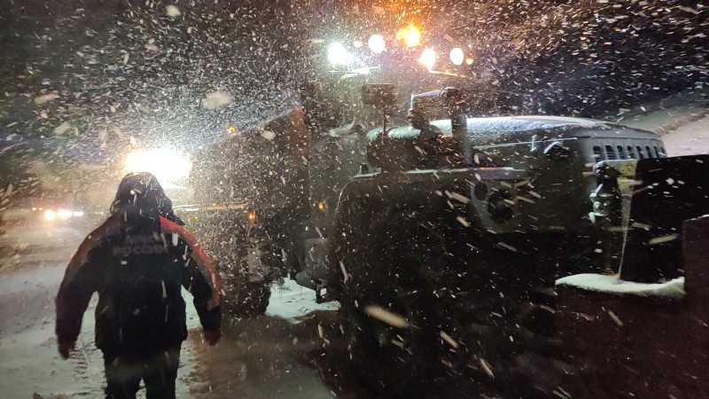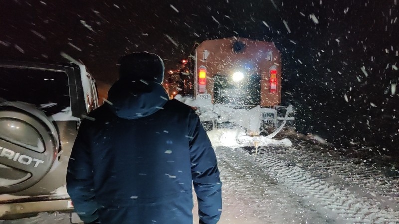- По линии оперативной дежурной смены поступило сообщение, что ночью в районе 27 км автоподьезда к селу Териберка грузовой автомобиль съехал с дорожного полотна и перекрыл движение. Кроме него на данном участке находились еще 4 легковых автомобиля. С техникой, проводящей чистку дорожного полотна, возможности связаться не было, связь в том районе неустойчивая. Оперативная группа Главного управления с дорожной техникой по взаимодействию с Мурманавтодором была направлена на тот участок, - сообщили в спасательном ведомстве региона.