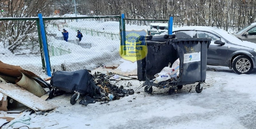 Как Nord-News рассказали в Мурманском филиале АО «Управление отходами», на данной контейнерной площадке было два евробака, один из них полностью сгорел и взорвался от пламени, а у второго повреждена стенка.