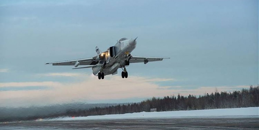 14 истребителей перехватчиков МиГ-31 и бомбардировщиков Су-24 отдельного смешанного авиационного полка Северного флота выполнили учебные полеты в небе Заполярья.