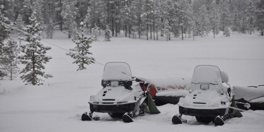 Возле озера Пакъявр спасли двух людей, застрявших на снегоходе районе 29 км автодороги «Кола - Лотта».