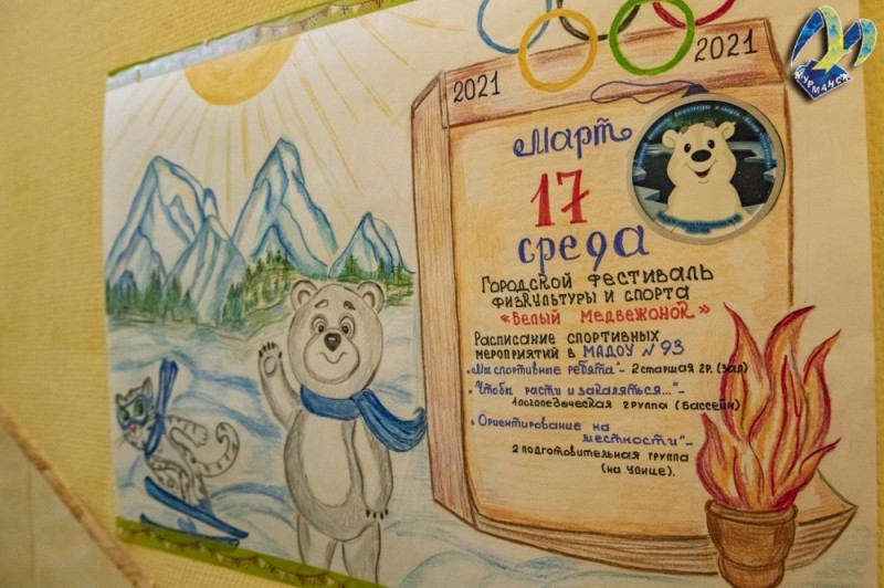 Так, сегодня садик № 93 организовал занятия по обучению плаванию в бассейне, «Веселые старты» в физкультурном зале и спортивное ориентирование на участке. В каждом из таких событий присутствовала не только спортивная составляющая, но и развлекательная. Дети смогли увидеть таких сказочных персонажей, как Баба-яга и Кощей, а также символ этого фестиваля - Белого мишку.