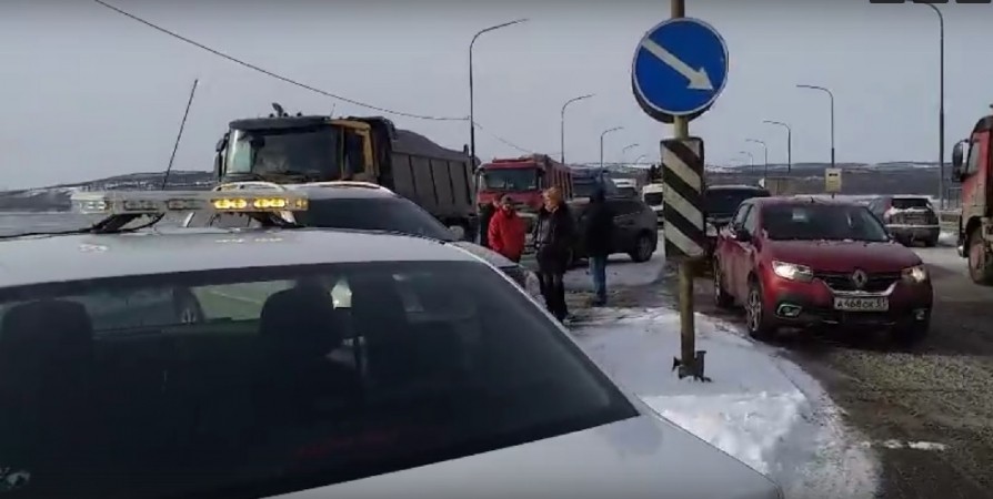 Сегодня на Кольском мосту в Мурманске произошло ДТП с участием трех автомобилей. В результате происшествия на дороге образовалась пробка.