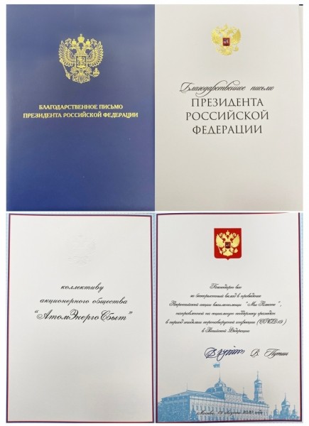 АтомЭнергоСбыт отмечен благодарственным письмом Президента Российской Федерации за бескорыстный вклад в организацию Общероссийской акции взаимопомощи #МыВместе. Награду от имени главы государства волонтерам вручил губернатор Смоленской области Алексей Островский.