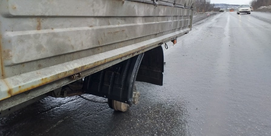 Сегодня под Мурманском, в районе отворотки на Дровяное произошло ДТП. У «ГАЗели» на ходу колеса отлетели в идущий сзади Lexus.