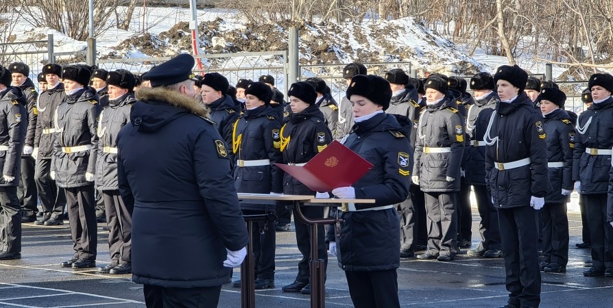 В Североморском кадетском корпусе состоялась торжественная церемония «Посвящение в Российские морские кадеты». Перед лицом своих товарищей на плацу кадетскую клятву произнесли 28 новых воспитанников 6-10 классов.