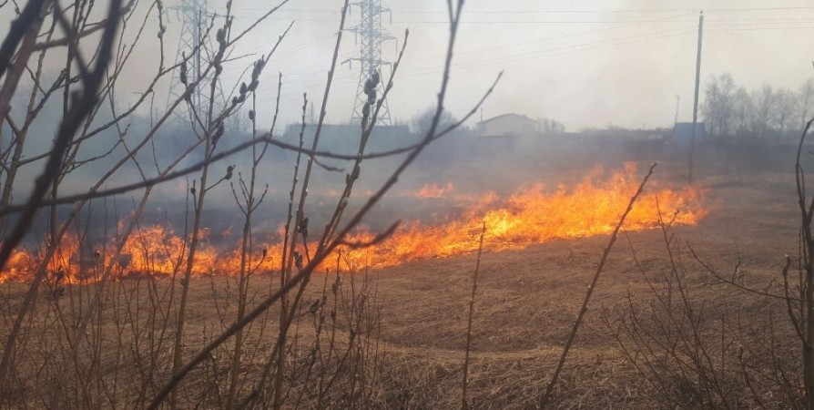 Трава горела на 100 квадратных метрах. До дома № 58 оставалось 100 метров. Огонь тушили четыре сотрудника пожарной службы и одна единица спецтехники.
