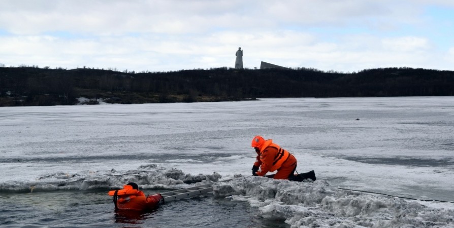 - Сейчас как раз тот самый период, когда это опасно, лёд уже достаточно тонкий. Сегодня мы отрабатывали технику спасения человека, если он провалился, с помощью спасательного круга, лестницы и верёвки, - рассказал изданию спасатель первого класса Мурманского арктического комплексного аварийно-спасательного центра Денис Иванов.