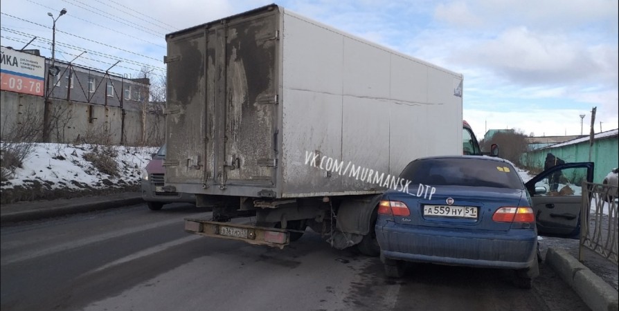 Сегодня в Мурманске на улице Домостроительной в районе дома № 6 произошло ДТП с участием грузового фургона и автомобиля Fiat. Об этом очевидцы сообщили в соцсетях.