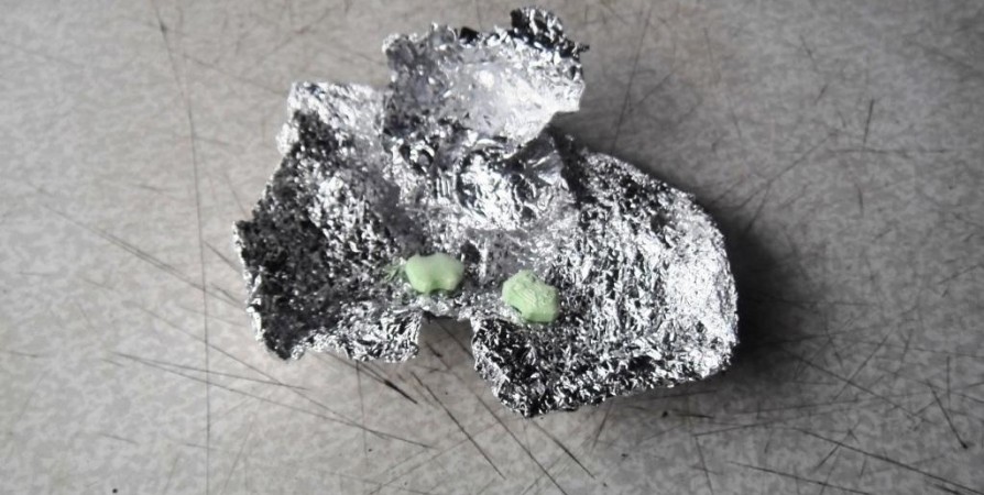 В ходе тщательного досмотра кабины водителя в пачке сигарет были обнаружены два фольгированных свёртка с двумя таблетками зеленого цвета.