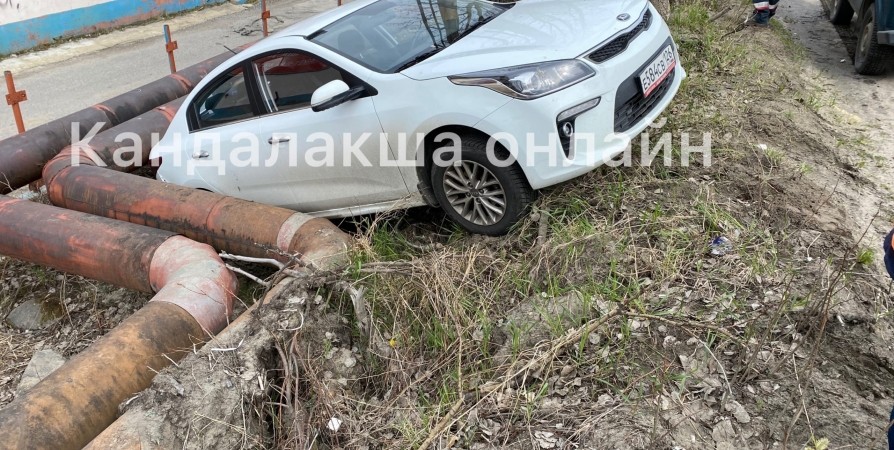 В Кандалакше на улице Данилова иномарка без водителя за рулем укатилась в трубы теплотрассы. Об этом сообщили очевидцы происшествия в соцсетях.