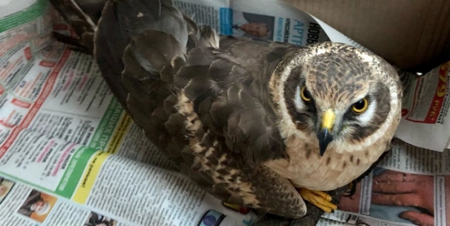 В Кировске поймали хищную птицу семейства ястребиных - полевого луня. Оказалось, у пернатого перелом плечевой кости. Сейчас хищник в надежных руках мурманского зооволонтера Натальи Раевской и проходит лечение.