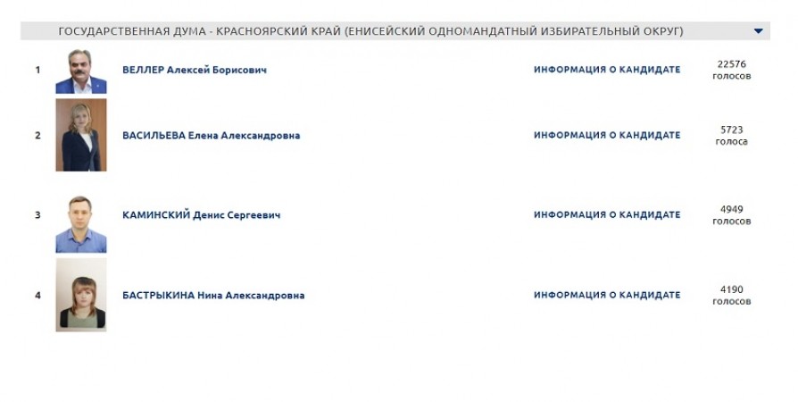 Алексей Веллер выиграл праймериз в Госдуму в Красноярском крае от Енисейского одномандатного избирательного округа. Его результат составил 22576 голосов.