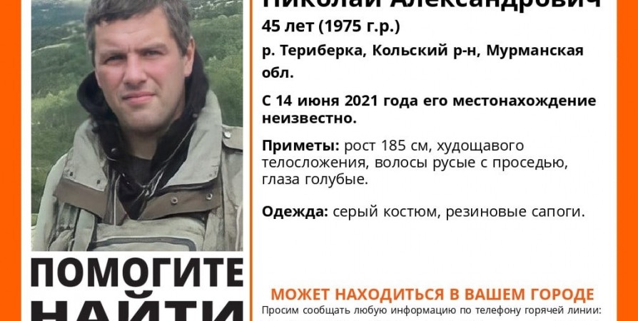 С начала недели на реке Териберка пропал 45-летний Николай Никольский, сообщили волонтеры. отмечается, что мужчина с 14 июня не выходит на связь.