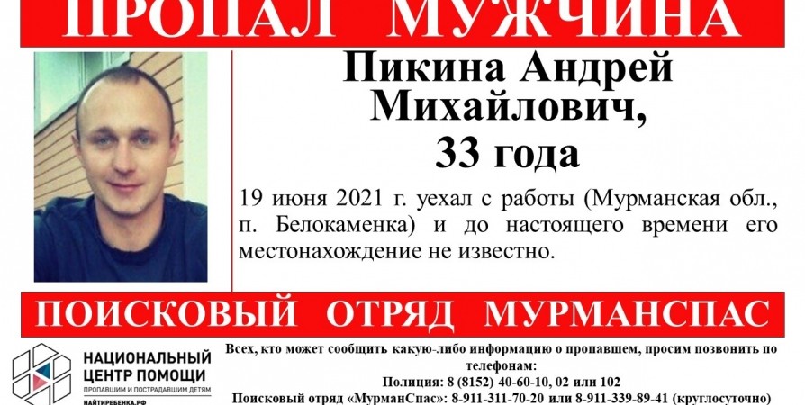 33-летний мужчина Андрей пикина уехал с работы из Белокаменки и пропал.