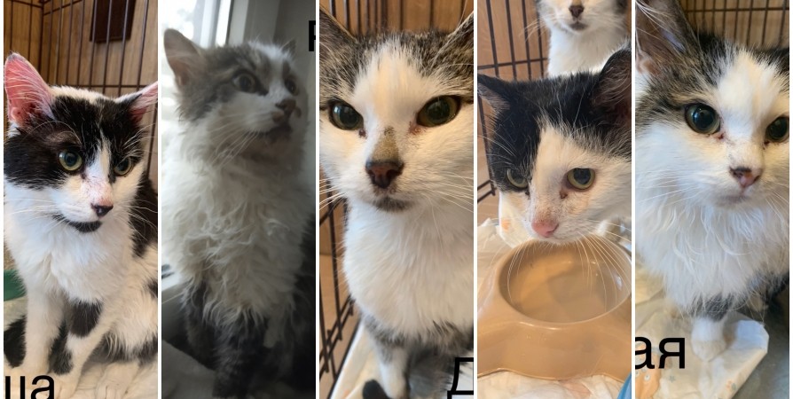 Спасенным после смерти пожилой хозяйки в Коле трем котам и двум кошкам срочно ищут дом. Сейчас питомцы активно проходят осмотр, берут анализы и обрабатывают от паразитов.