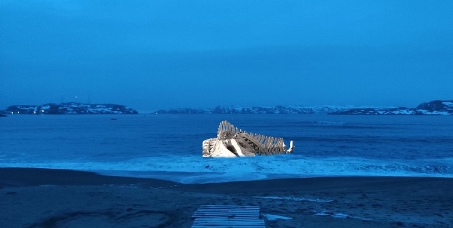- Объект представляет собой макет скелета кита, установленном на латерали на берегу Баренцево моря в Териберке. Во время прилива будет видна только верхняя его часть, а во время отлива к скульптуре можно будет подойти, потрогать, сфотографироваться и даже взобраться на нее, - пояснил автор.