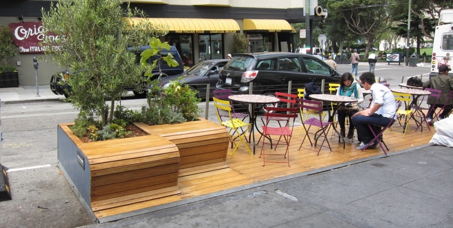 Согласно документации три зоны отдыха со столами и стульями установят для мурманчан, так называемые парклеты.