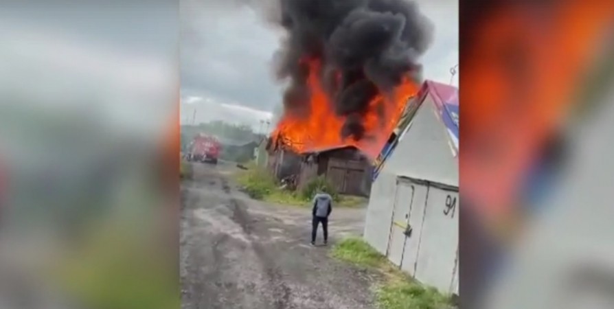 В североморском авиагородке пожарные борются с огнем, который охватил, по предварительным данным, семь гаражей. Об этом сообщает паблик ВК «Североморск Life».
