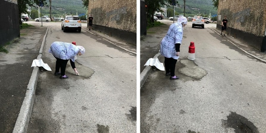 Жительница Мурманска сама заделала яму во дворе. Речь идет о проспекте Кольском, 108. Об этом случае рассказал Telegram-канал «Заполярный Ворчун».