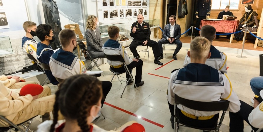 Губернатор Мурманской области Андрей Чибис встретился с представителями молодежных патриотических объединений региона в музее Северного флота в Сафоново.