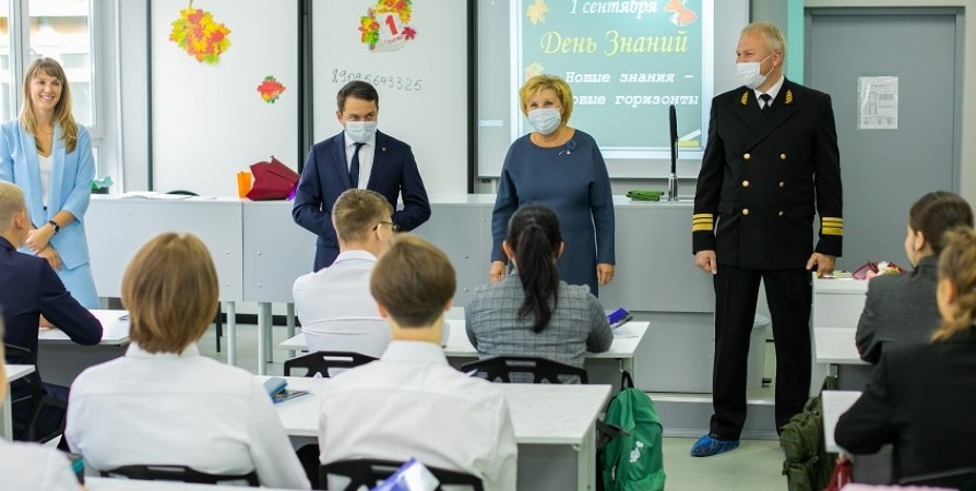 Губернатор Андрей Чибис и генеральный директор АО «Мурманский морской торговый порт» Алексей Рыкованов поздравили с Днем знаний учащихся гимназии № 8 в Мурманске, над которой шефствует ММТП.
