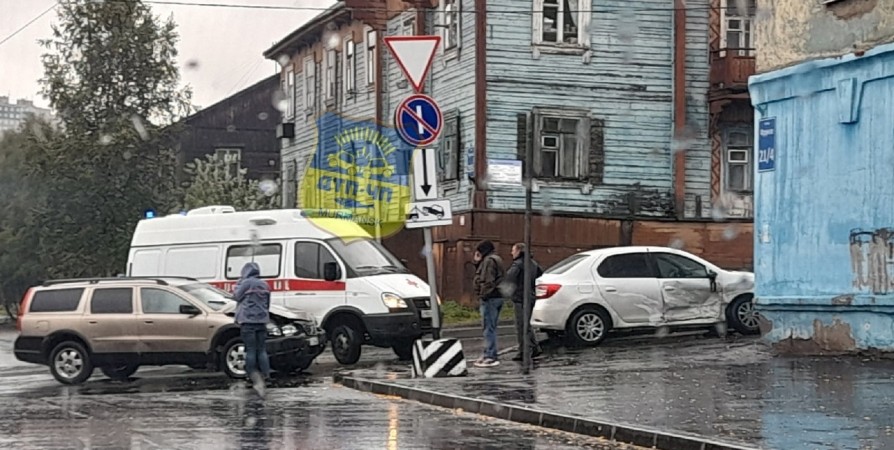 В Мурманске сегодня утром около 9 часов на улице Фрунзе столкнулись две иномарки Volvo и Renault.