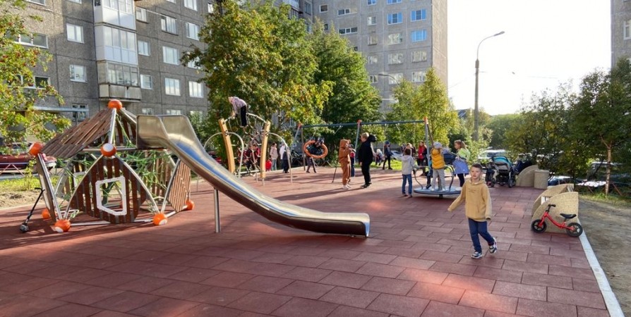 Для детей в Мурманске во дворе дома по проспекту Кольскому, 157 открыли игровую площадку, где ранее было установлено оборудование еще советского образца.