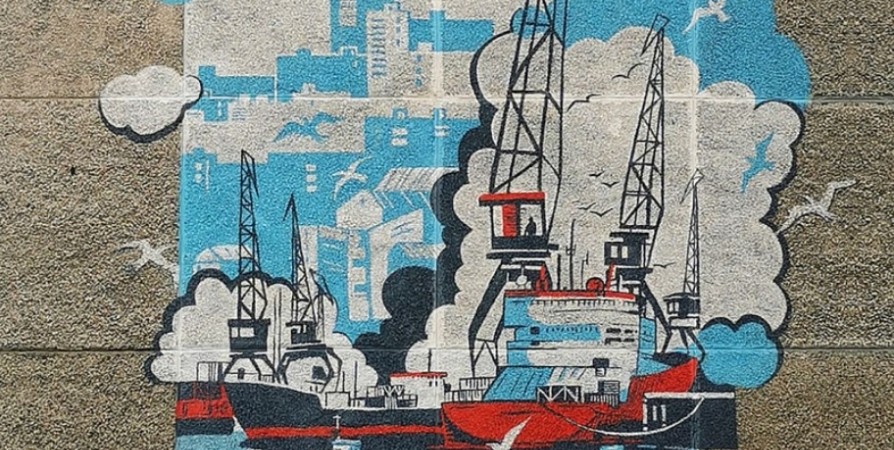 В Мурманске на торце жилого дома на проспекте Кирова, 31 появился новый мурал. Автор эскиза, председатель регионального отделения Союза художников России Мария Михайленко, изобразила традиционный для столицы Кольского Заполярья пейзаж - рыболовецкие траулеры в порту на фоне города.