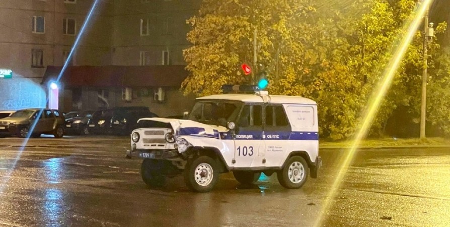 Пассажирка Volkswagen Passat пострадала после столкновения с служебным авто ППС в Мурманске на перекрестке улицы Полярные Зори и улицы Книповича.