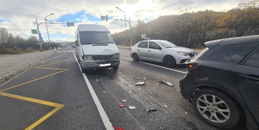 - На месте работает бригада скорой помощи. Женщине за рулем авто Mazda стало плохо. Микроавтобус догнал автомобили, которые хотели повернуть, - сообщают жители в паблике ВК «Североморск Life».