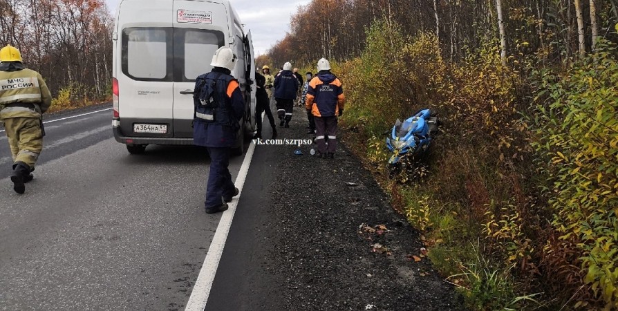 На 1 км дороги Кола-Лотта столкнулись мотоцикл и кроссовер Mitsubishi Outlander.