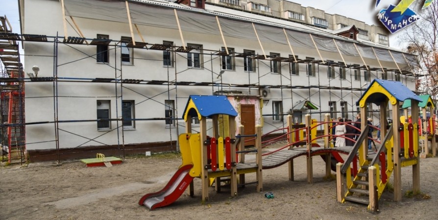 Ремонт фасада детсада на Ростинской в Мурманске идет по графику