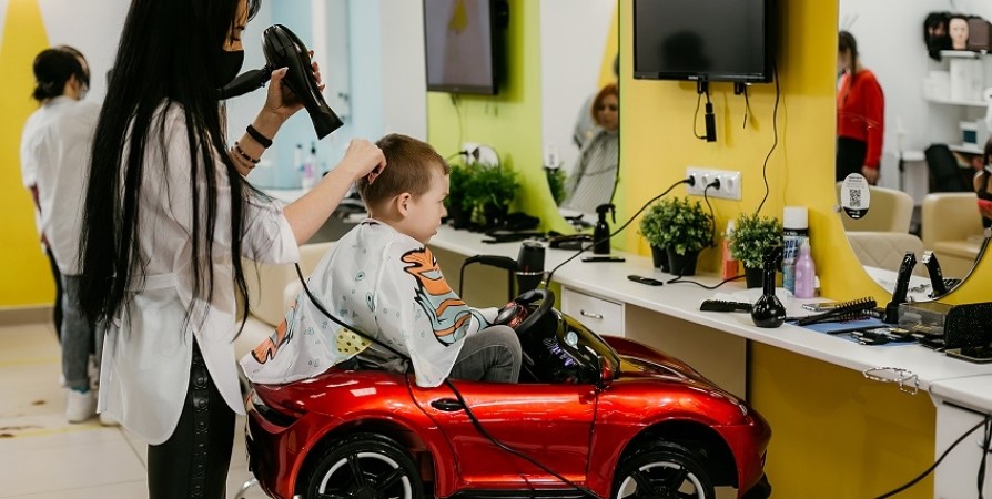 Для самых маленьких клиентов в салоне расположен обновленный «автопарк» - это современные кресла-машинки, в которых детям будет удобно, интересно и увлекательно во время стрижки. Также для малышей предусмотрены трансляция мультиков, игровая зона, мыльные пузыри, игрушки и шарики, чтобы пребывание в парикмахерской для них было игривым приключением без капризов.