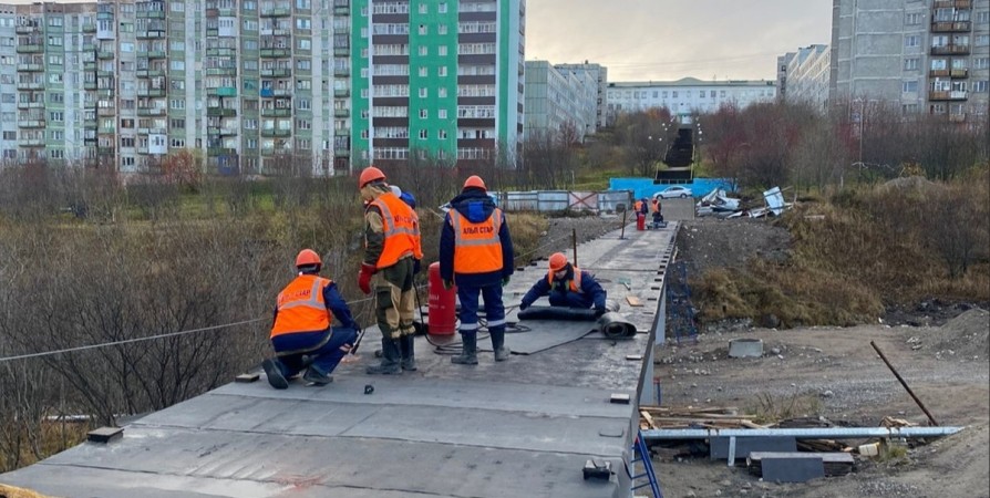 В Полярном строительство пешеходного моста между улицами Душенова и Моисеева задерживается из-за погодных условий. Сообщается, что строительство находится на завершающей стадии.