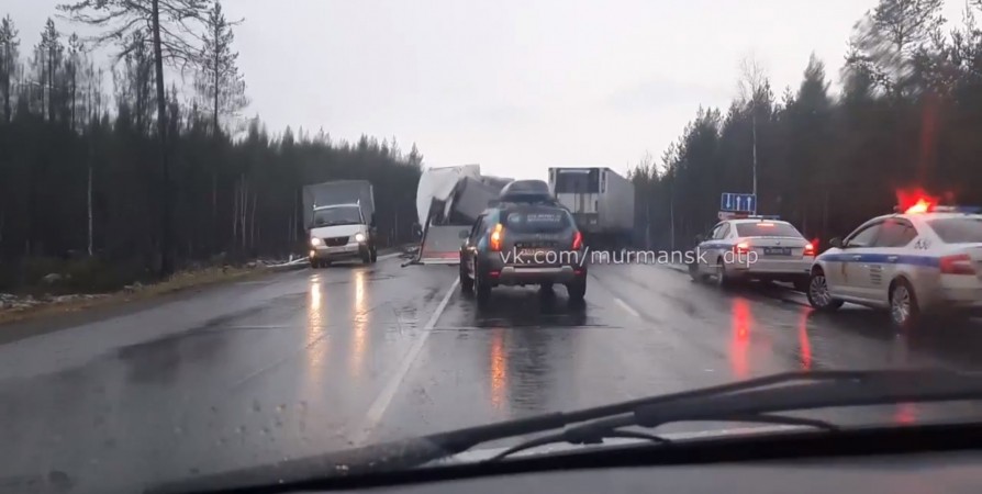 На федеральной трассе Р-21 «Кола» произошло серьезное ДТП. Около поворота в сторону Апатитов на дороге столкнулись три фуры. Видео с места событий опубликовал очевидец в группе «Мурманск ДТП ЧП» в социальной сети «ВКонтакте».