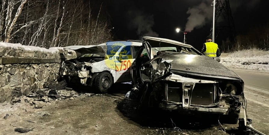 В Мурманске на Верхне-Ростинском шоссе около старого кладбища произошло серьезное ДТП. Автомобиль Audi столкнулся с машиной такси.