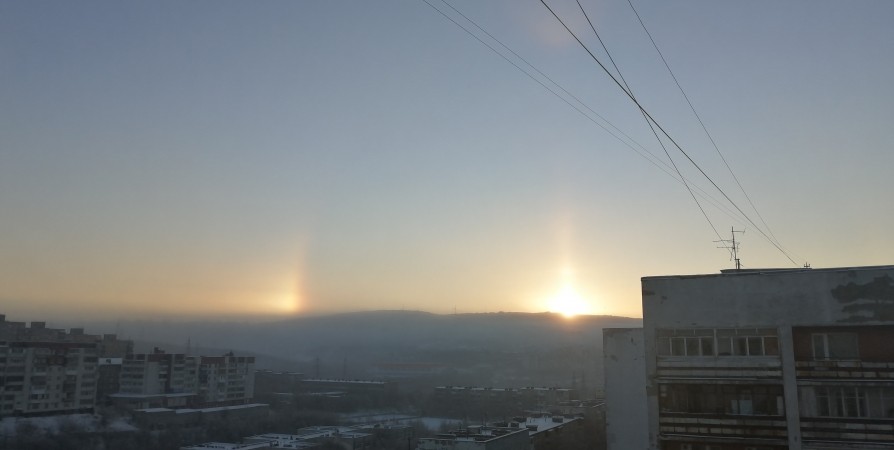 Сегодня жители Мурманска стали свидетелями необычного явления - солнечного гало. Северянка Таисия запечатлела на фото интересный солнечный эффект и поделилась им с Nord-News.
